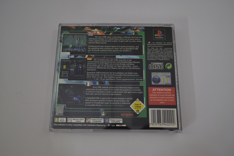 Speedball 2100 is een sport- en actiespel uitgebracht voor de Playstation 1 / PS1 in 2000 Ontwikkeld door Cryo Interactive en uitgegeven door Titus Interactive laat spelers deelnemen aan een futuristische, agressieve sport die elementen van handbal en hockey combineert