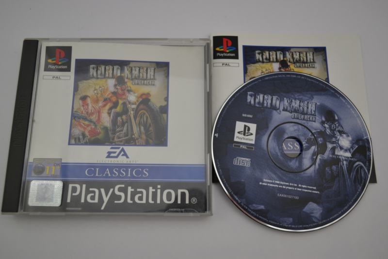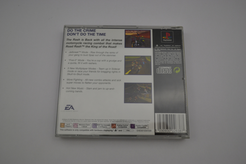Road Rash: Jailbreak voor de PlayStation 1 is een arcade-racegame waarin snelheid en gevechten hand in hand gaan. Je racet op motoren terwijl je tegenstanders van hun bike probeert te slaan met vuisten, wapens en brute kracht.