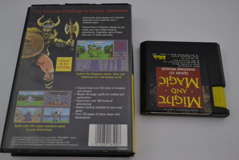 Might and Magic: Gates to Another World voor de SEGA MegaDrive is een role-playing game waarin je een groep avonturiers samenstelt en een fantasiewereld verkent vol monsters, steden en geheimen. De game is gebaseerd op de populaire Might and Magic-serie en brengt de RPG-ervaring naar de 16-bit console.