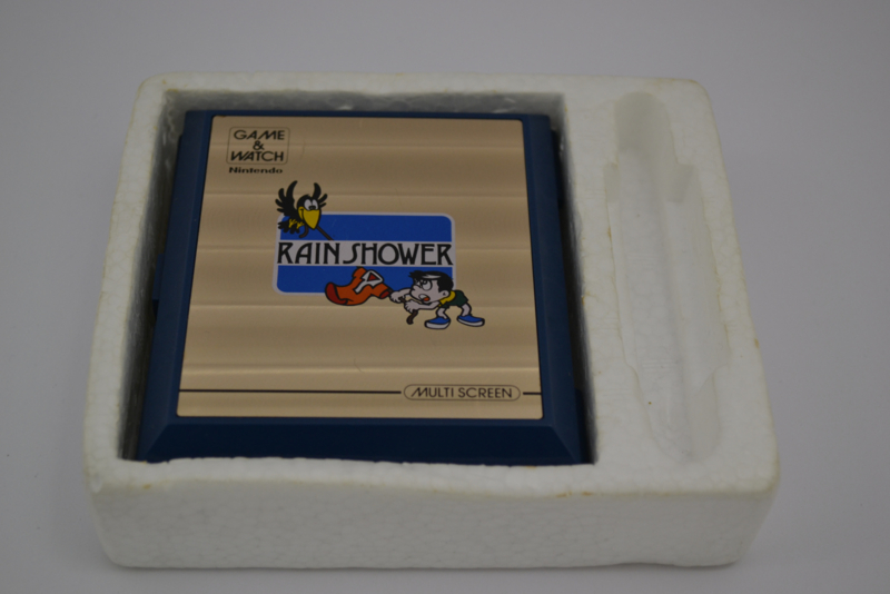 Nintendo Game & Watch: Rain Shower is een vroege handheld uit de bekende Game & Watch-serie van Nintendo. In deze game moet je vallende mensen opvangen met een paraplu en ze veilig naar binnen begeleiden terwijl de regen blijft vallen.