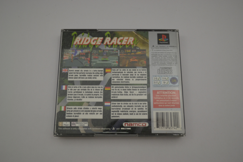 De game Ridge Racer voor de Playstation 1 / PS1 is origineel.