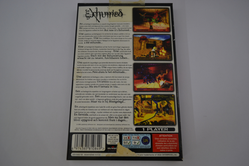Exhumed voor de Sega Saturn (ook bekend als Powerslave) is een first-person shooter die zich afspeelt in het oude Egypte. Je neemt het op tegen bovennatuurlijke vijanden zoals mummies en andere monsters terwijl je een mysterieus kwaad probeert te stoppen.