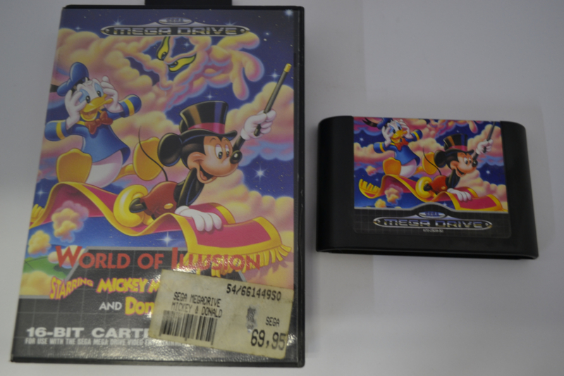 World of Illusion - Starring Mickey Mouse and Donald Duck (MD CB)World of Illusion - Starring Mickey Mouse and Donald Duck - SEGA MegaDriveDe game World of Illusion - Starring Mickey Mouse and Donald Duck voor de SEGA MegaDrive is origineel.
